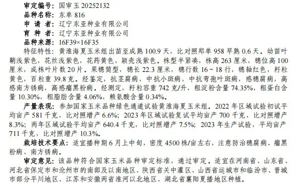 東亞種業(yè)3個(gè)玉米品種通過(guò)國(guó)家審定!