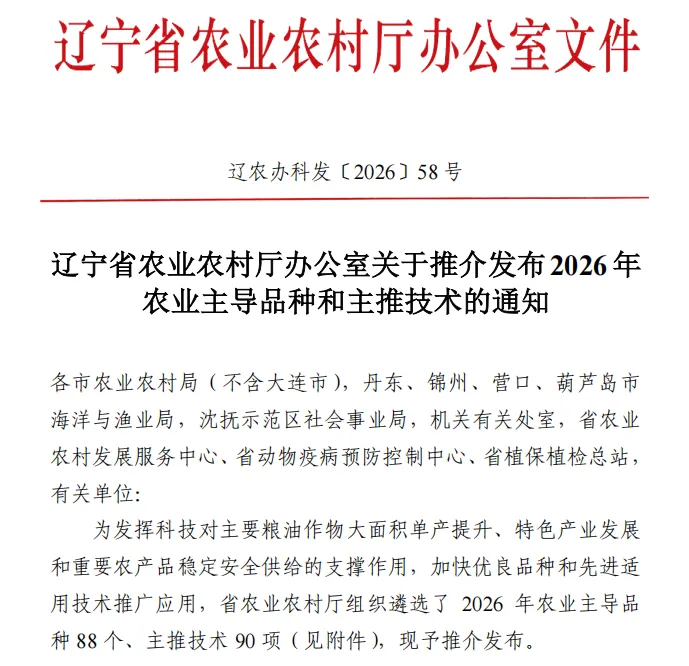 近日,遼寧省農業農村廳發布了2026年農業主導品種和主推技術通知,遼寧東亞種業自主培育的東單1331、東科1188入選2026年遼寧省農業主導品種。